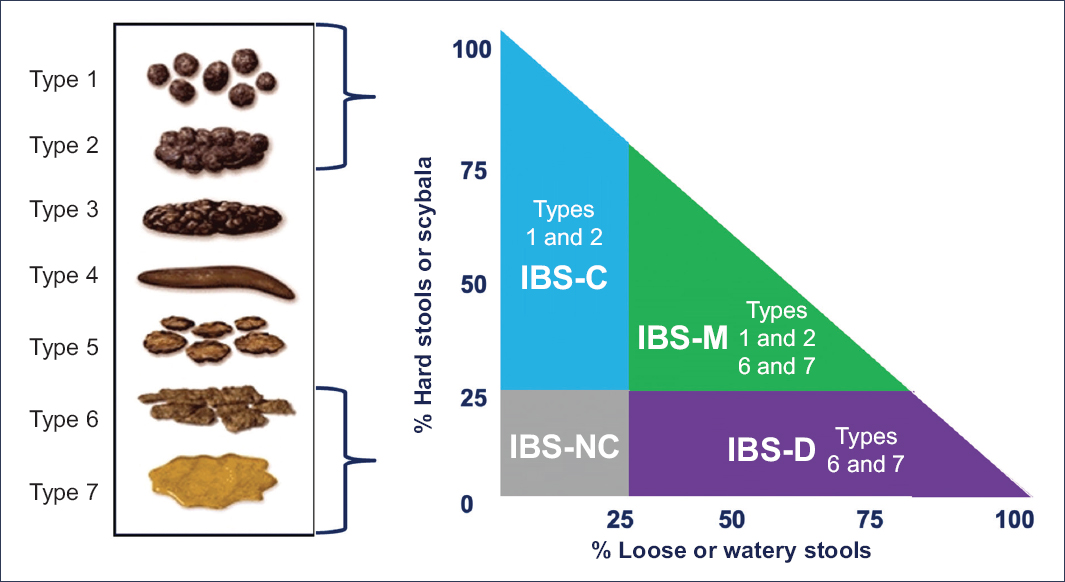 The IBS subtype is based primarily on the Bristol Stool Form Scale, which distinguishes seven stool types according to intestinal transit (Fig.1).