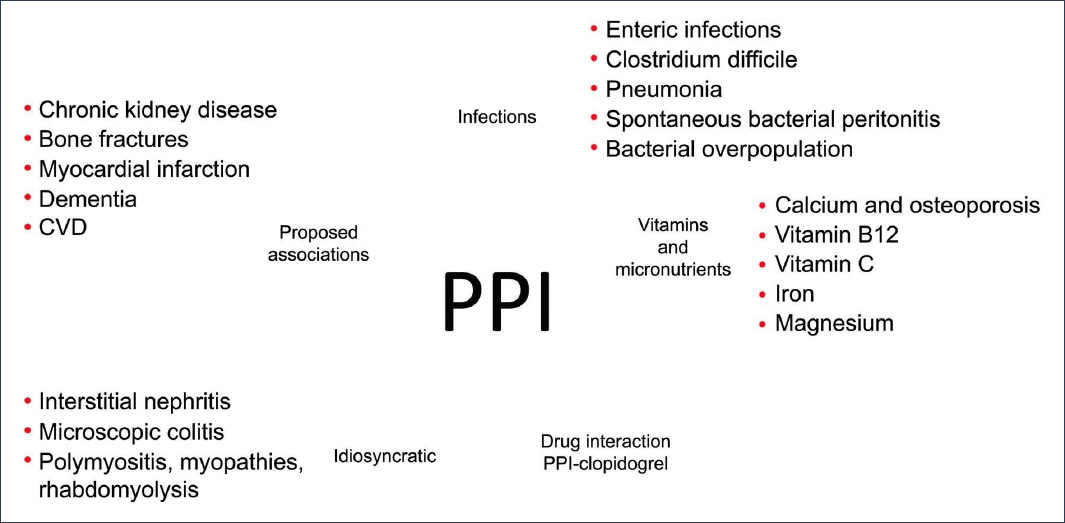 PPIs are generally well tolerated, but their prolonged use has been associated with some adverse effects (Fig. 1), such as: