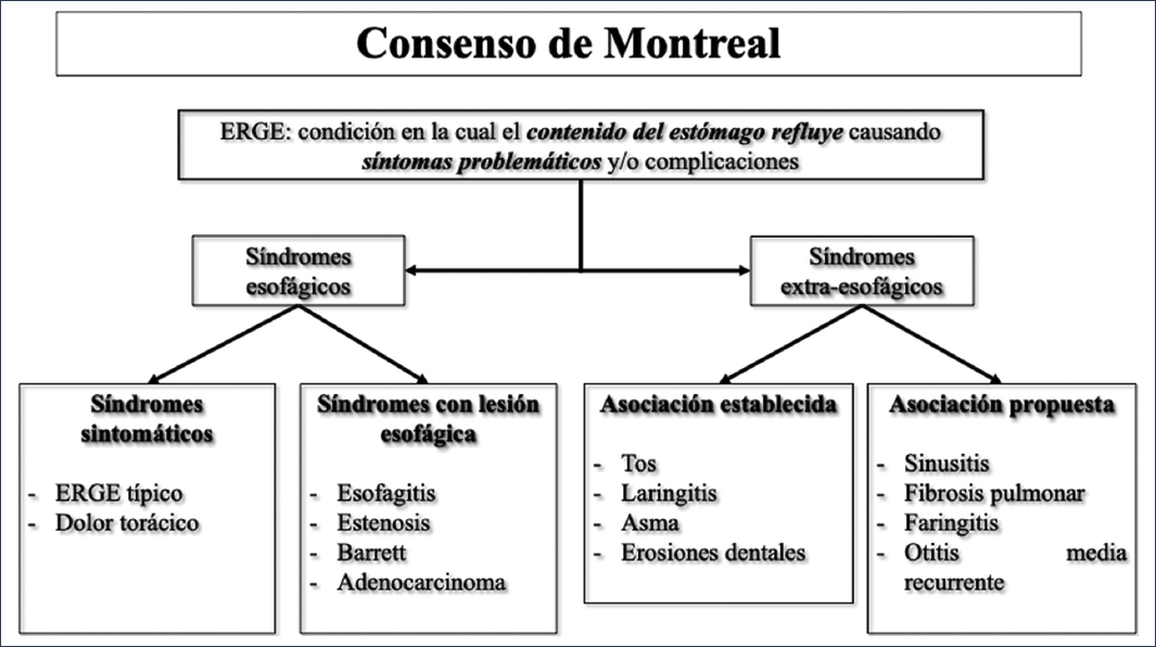 Figura 1. Clasificación de la enfermedad por reflujo gastroesofágico (ERGE) de acuerdo con el consenso de Montreal.