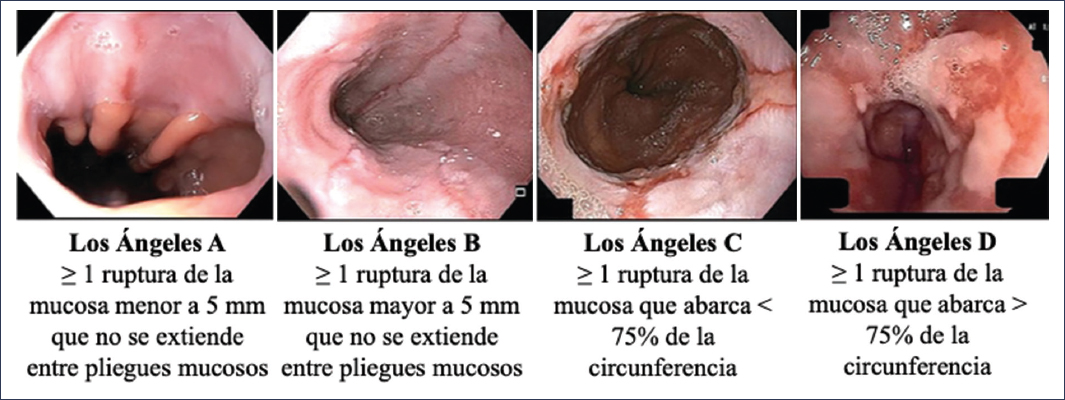 Figura 5. Representación gráfica de la clasificación de Los Ángeles (tomado y traducido de Lundell et al.10 y Spechler et al.40)<.