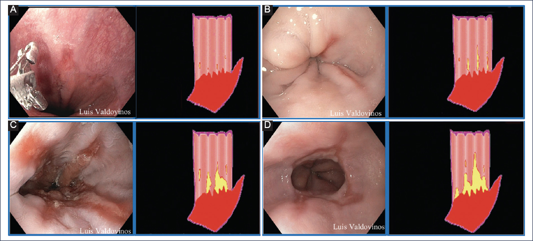 Figura 1. (A-D) Clasificación endoscópica de Los Ángeles.