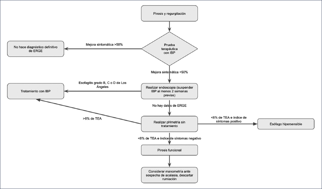 Figura 5. Diagrama de flujo para el diagnóstico definitivo de enfermedad por reflujo gastroesofágico (ERGE).